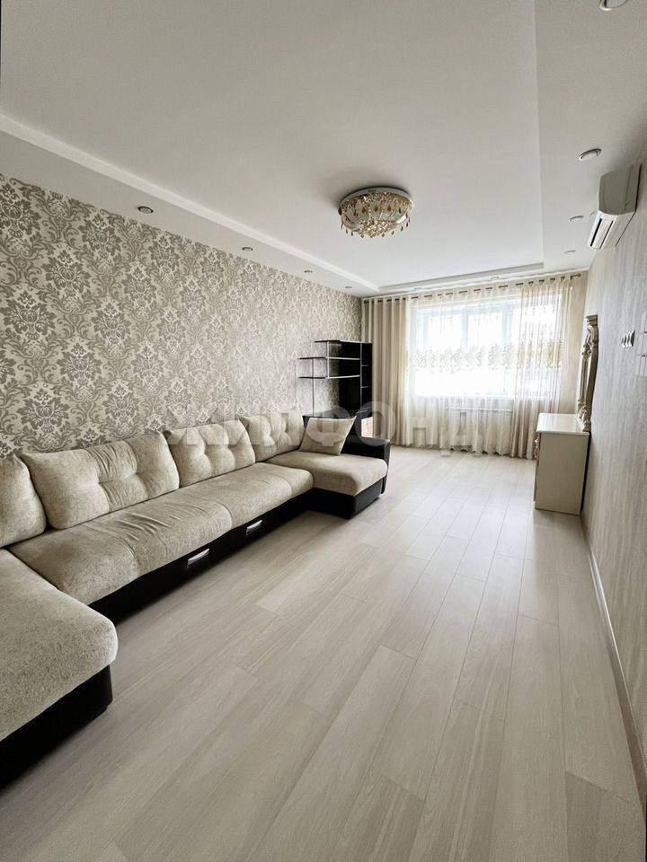 В квартире выполнен хороший ремонт, все в светлых тонах (обои, ламинат, натяжные потолки, в ванной и санузле - плитка) .